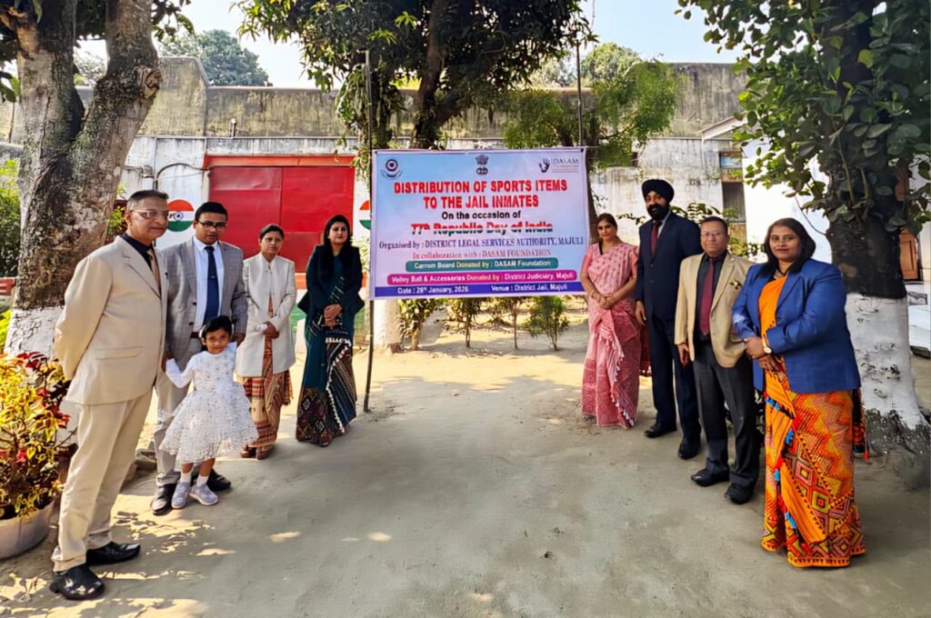 The programme, organised by the District Legal Services Authority (DLSA), Majuli, formed part of its ongoing efforts to support the physical and mental well-being of inmates and to ensure that national occasions such as Republic Day are observed inclusively within correctional institutions. During the event, one carrom board and a volleyball, along with accessories, were handed over for the use of around 45 inmates. The initiative sought to encourage healthy recreation, mental well-being, discipline, and positive interaction among inmates, while underscoring the role of sports and indoor games in the reformative and rehabilitative process.