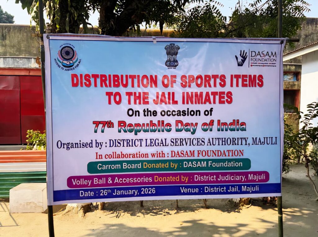 On the occasion of the 77th Republic Day, the Dasam Foundation, in association with the District Legal Services Authority (DLSA), Majuli, donated sports equipment to inmates of the District Jail, Majuli, with the objective of promoting inmate welfare and overall well-being.