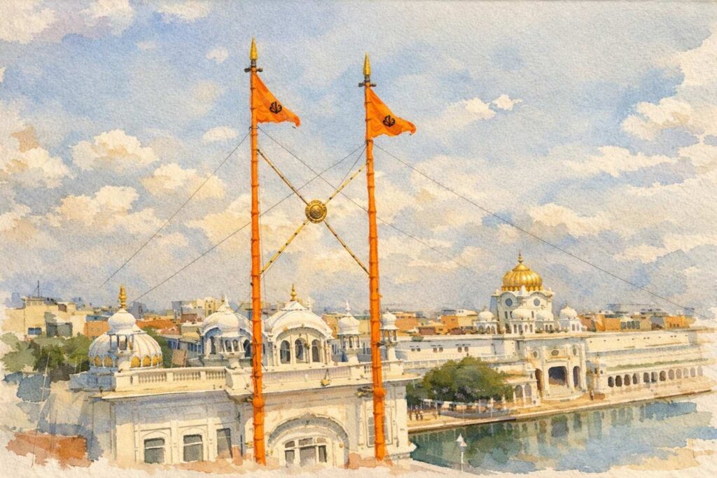 Guru Hargobind also established the Akal Takht in Amritsar as the seat of temporal deliberation and justice. The Akal Takht complemented the spiritual authority represented by Harmandir Sahib, together symbolizing the dual dimensions of Sikh life: spiritual reflection and responsible engagement with society.